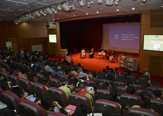 南京市全民阅读办葛继彬处长向现场观众介绍了24本经典名著的全年“深阅读”计划。南京市目前有300家左右民间读书会,现场邀请到两家民间读书会会长与观众交流了举办读书会的悲喜艰难与收获。法语联盟校长杰拉德先生与著名DJ文岚女士中法双语经典诵读《小王子》,南京雩剧坊公益儿童剧团的志愿者们也带来了诙谐有趣的肢体剧《三只小猪》。现场还加入了一些有趣的互动环节,观众可通过竞猜书名获得名家亲笔签名的图书,以及与陌生书友现场换书等。(蒋灿灿)