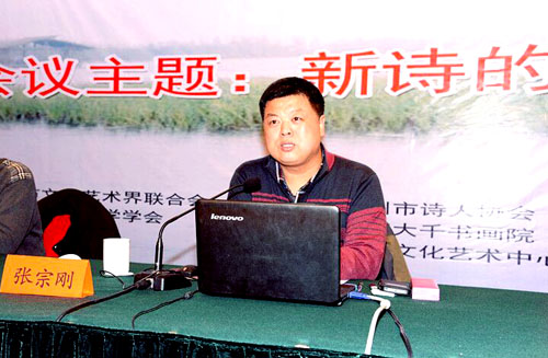 推进会上,江苏省散文学会副会长、诗歌评论家张宗刚(南京理工大学诗学研究中心主任)作了《中国新诗的前世今生》的主题讲座。与会代表就“新诗的中国抒情”展开了深入的研讨,承办者宣读了《泰州新诗的七点认知》。