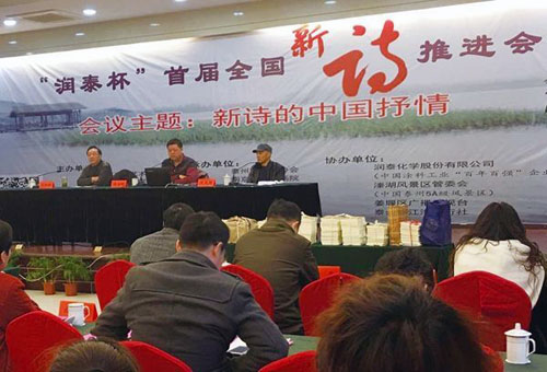“百年新诗,百人推进。当代新诗,中国抒情。”中国新诗诞辰百年之际,江苏省泰州市诗人协会与市文联、江苏省大众文学学会筹划,上百名来自省内外的诗友欢聚一堂,于2016年3月中旬,共同举行了“润泰杯”首届全国新诗推进会,以纪念百年新诗史上涌现的优秀诗人,促进新诗更加贴近心灵、贴近现实、贴近百姓,激 励新诗写作人采集地火的精神呼吸,留下泰州新诗立足泰州、辐射全国乃至全球华语诗歌界的文化印记。